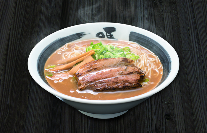 香り豊かな豚骨醤油スープが自慢のばり嗎ラーメン。じっくり煮出した豚骨のコクと醤油の深い旨みが絶妙に調和しています。麺はスープと絡みやすい細めのストレート麺を使用。ズズッと一気に啜ってお召し上がりください。トッピングのチャーシューは店内で丁寧に仕込み、ジューシーで柔らかく仕上げました。一口ごとに満足感が広がる、こだわりのラーメンをぜひお楽しみください。